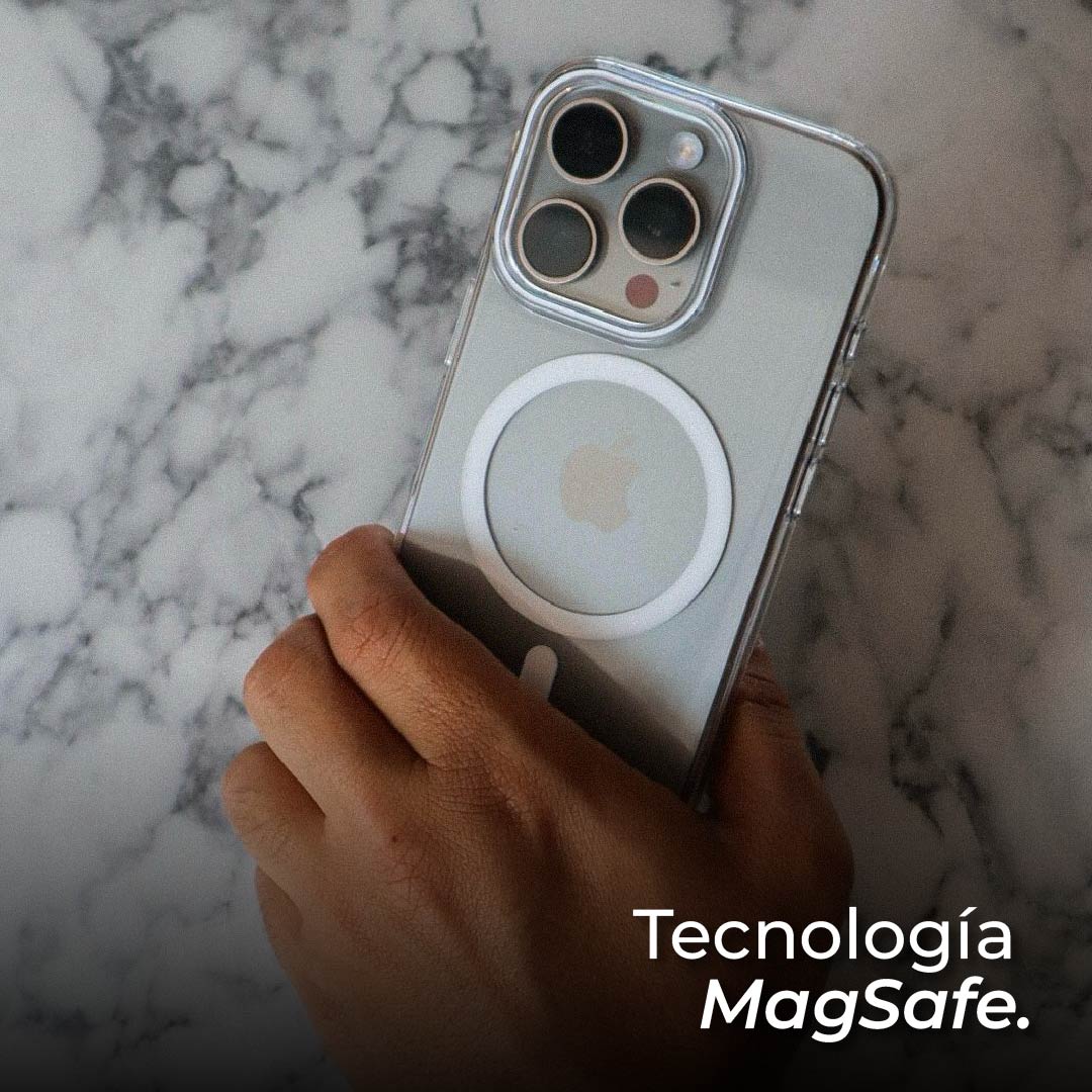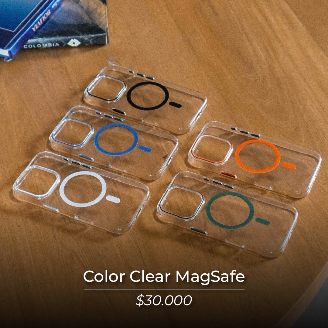 El Clear Color MagSafe es un case transparente fabricado en acrílico resistente, con detalles de color sutiles y modernos que le dan a tu iPhone un toque único sin ocultar su diseño original.
